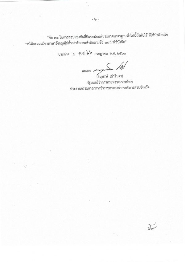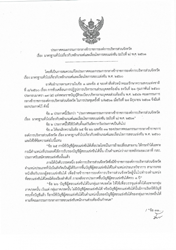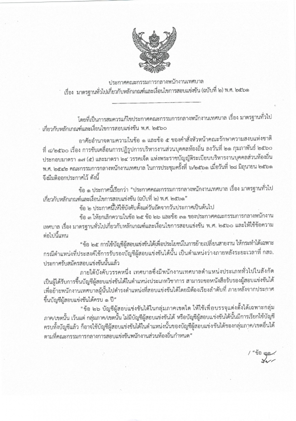 ประกาศคณะกรรมการกลางข้าราชการและพนักงานส่วนท้องถิ่น เรื่องมาตราฐานทั่วไปเกี่ยวกับหลักเกณฑ์และเงื่อไขการสอบแข่งขัน (ฉบับที่ 2) พ.ศ.2561