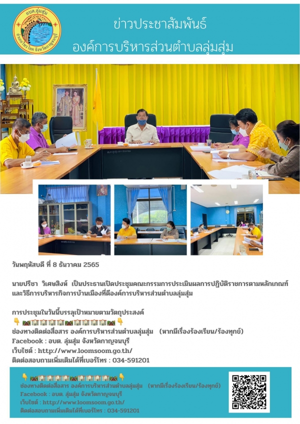 นายปรีชา วิเศษสิงห์ เป็นประธานเปิดประชุมคณะกรรมการประเมินผลการปฏิบัติราชการตามหลักเกณฑ์และวิธีการบริหารกิจการบ้านเมืองที่ดีองค์การบริหารส่วนตำบลลุ่มสุ่ม
