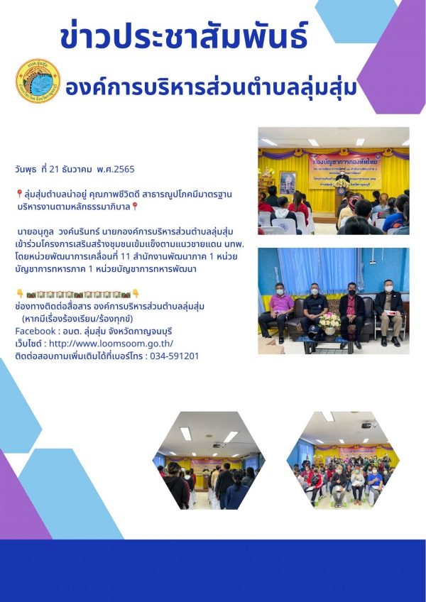 นายอนุกูล วงค์นรินทร์ นายกองค์การบริหารส่วนตำบลลุ่มสุ่ม เข้าร่วมโครงการเสริมสร้างชุมชนเข้มแข็งตามแนวชายแดน นทพ. โดยหน่วยพัฒนาการเคลื่อนที่ 11 สำนักงานพัฒนาภาค 1 หน่วยบัญชาการทหารภาค 1 หน่วยบัญชาการทหารพัฒนา