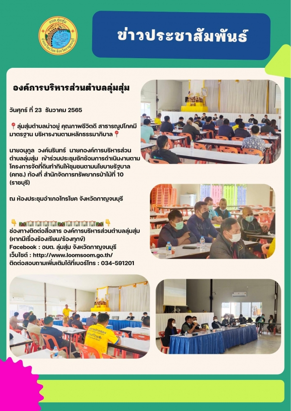 นายอนุกูล วงค์นรินทร์ นายกองค์การบริหารส่วนตำบลลุ่มสุ่ม เข้าร่วมประชุมซักซ้อมการดำเนินงานตามโครงการจัดที่ดินทำกินให้ชุมชนตามนโยบายรัฐบาล (คทช.) ท้องที่ สำนักจัดการทรัพยากรป่าไม้ที่ 10 (ราชบุรี)