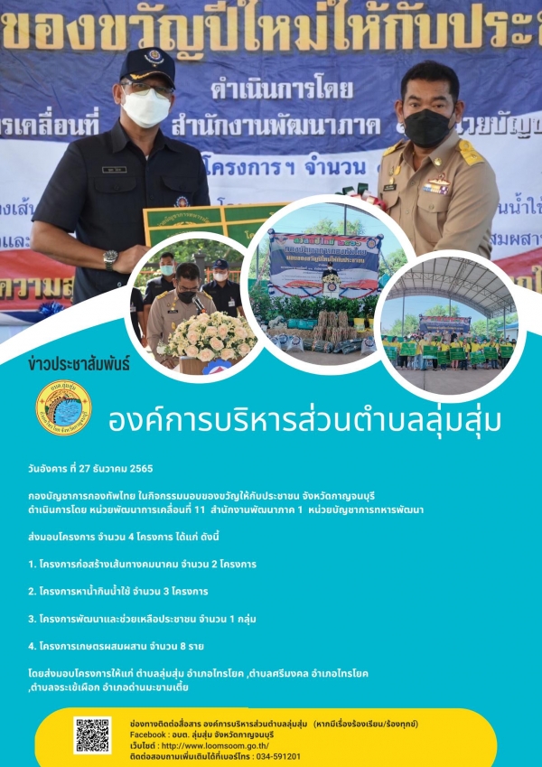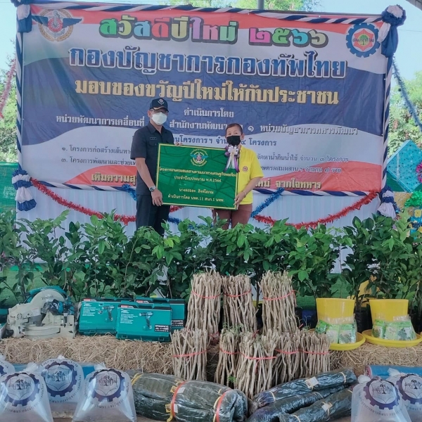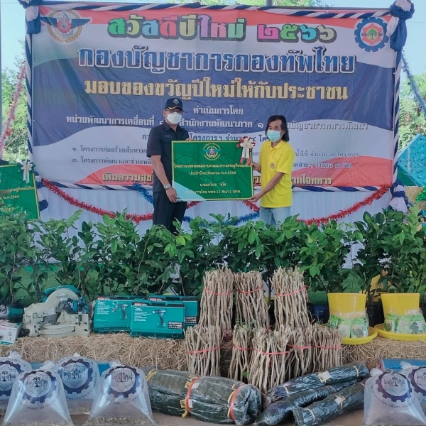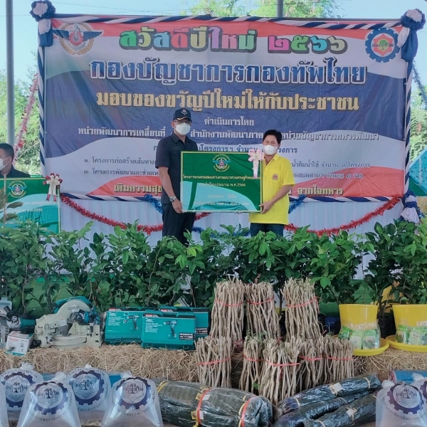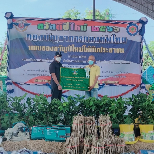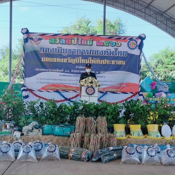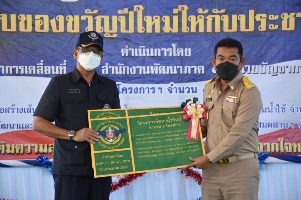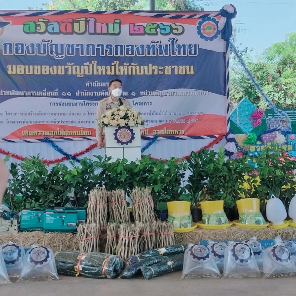 กองบัญชาการกองทัพไทย ในกิจกรรมมอบของขวัญให้กับประชาชน จังหวัดกาญจนบุรี ดำเนินการโดย หน่วยพัฒนาการเคลื่อนที่ 11 สำนักงานพัฒนาภาค 1 หน่วยบัญชาการทหารพัฒนา