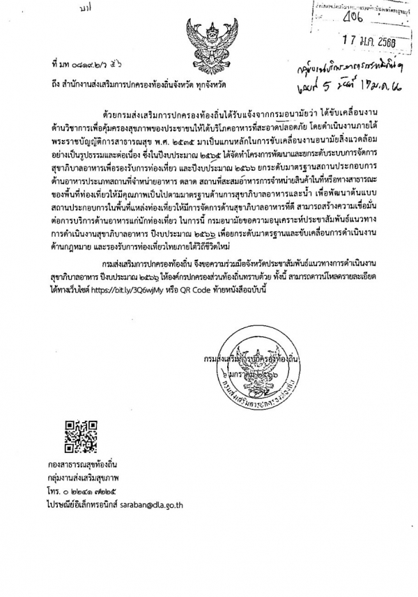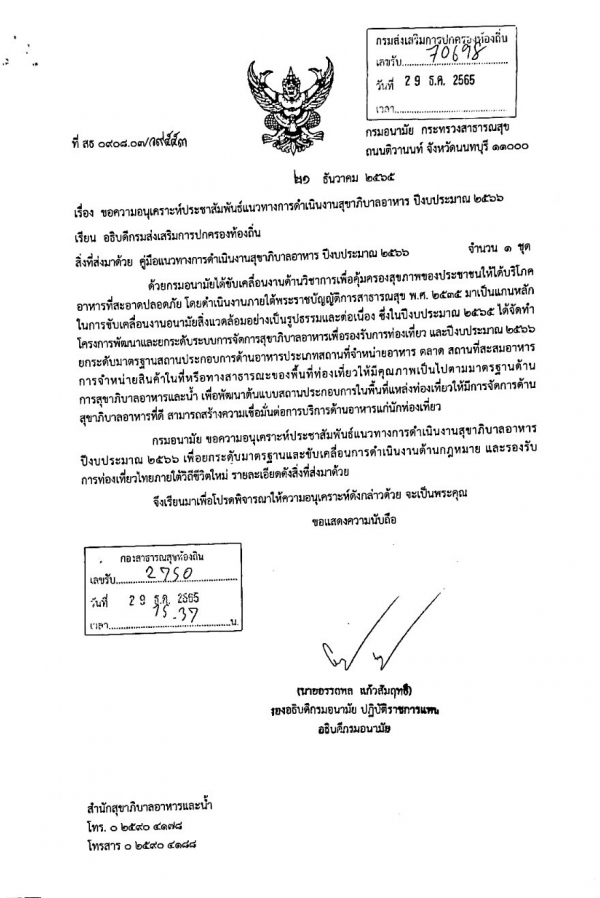 ประชาสัมพันธ์แนวทางการดำเนินงานสุขาภิบาลอาหาร ปีงบประมาณ 2566