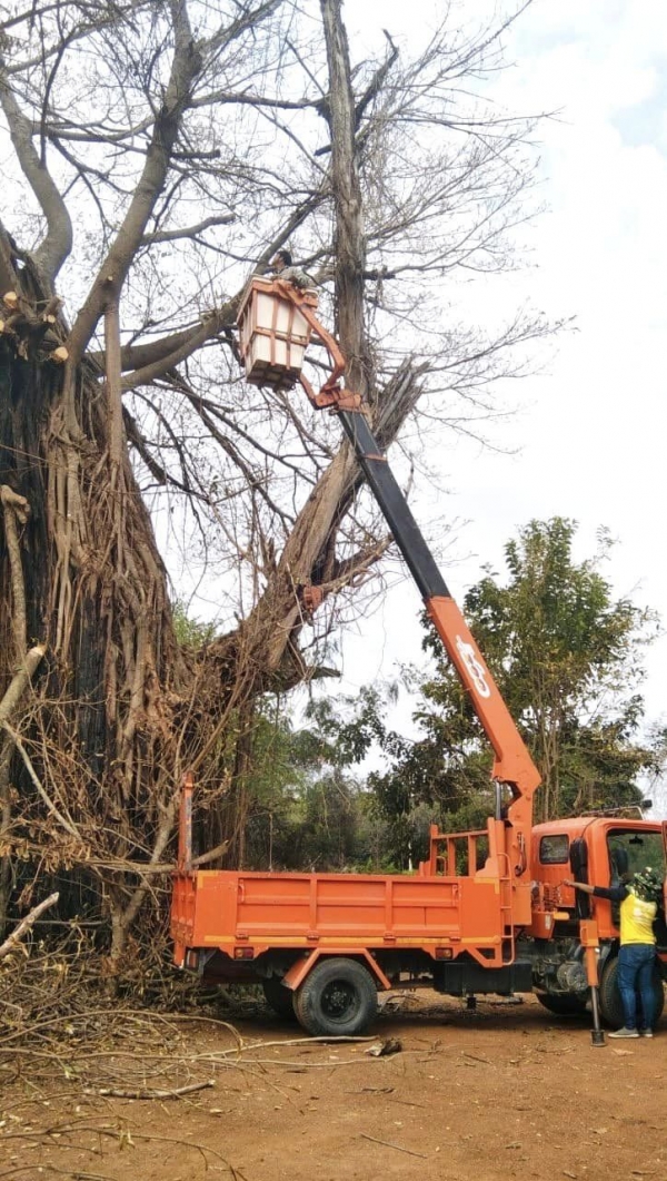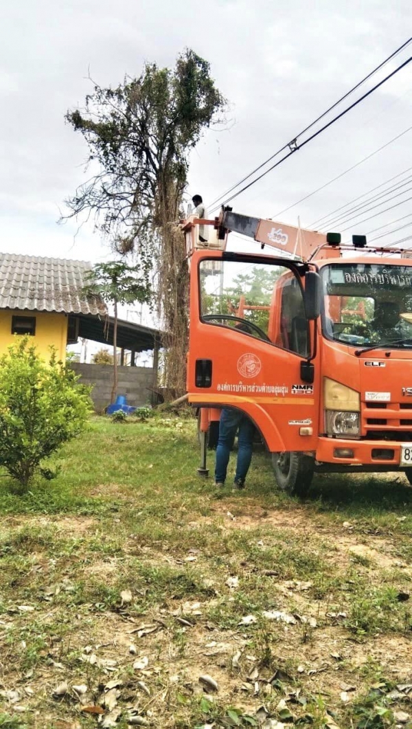นายอนุกูล วงค์นรินทร์ นายกองค์การบริหารส่วนตำบลลุ่มสุ่ม มอบหมายให้เจ้าหน้าที่นำรถกระเช้าพร้อมอุปกรณ์ ลงพื้นที่ตัดต้นไม้ที่เอนกีดขวาง บริเวณตำบลลุ่มสุ่ม เพื่อปรับปรุงภูมิทัศน์และความปลอดภัยของชาวบ้าน