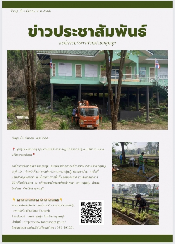 องค์การบริหารส่วนตำบลลุ่มสุ่ม โดยมีสมาชิกสภาองค์การบริหารส่วนตำบลลุ่มสุ่ม หมู่ที่ 10 , เจ้าหน้าที่องค์การบริหารส่วนตำบลลุ่มสุ่ม และชาวบ้าน ลงพื้นที่ปรับปรุงภูมิทัศน์บริเวณพื้นที่ด้านทางขึ้นถ้ำเชลยและทำความสะอาดอาคารพิพิธภัณฑ์ถ้ำเชลย ณ บริเวณแหล่งท่องเที่ยวถ้ำเชลย ตำบลลุ่มสุ่ม อำเภอไทรโยค จังหวัดกาญจนบุรี