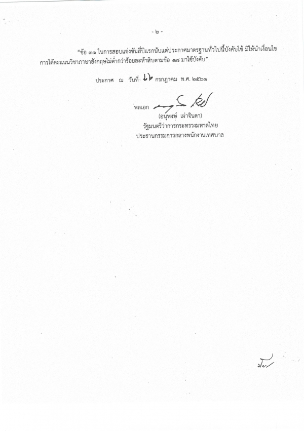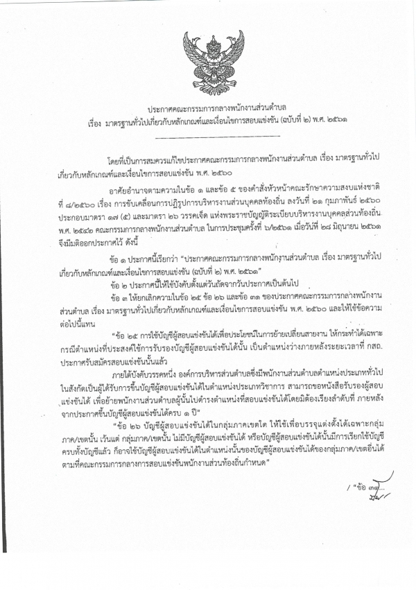 ประกาศคณะกรรมการกลางข้าราชการและพนักงานส่วนท้องถิ่น เรื่อง มาตรฐานทั่วไปเกี่ยวกับหลักเกณฑ์และเงื่อนไขการสอบแข่งขัน (ฉบับที่ 2) พ.ศ.2561