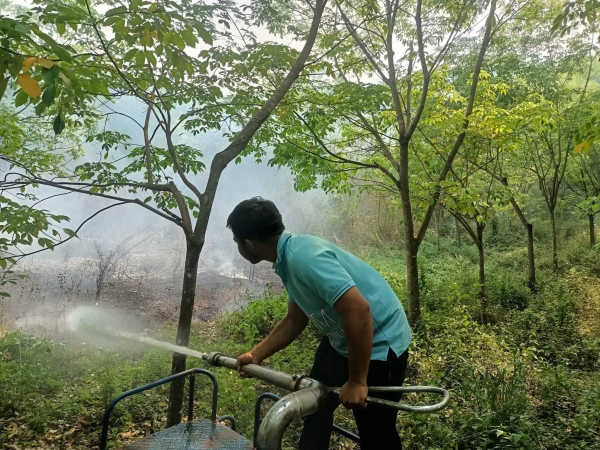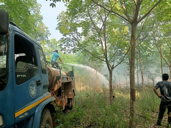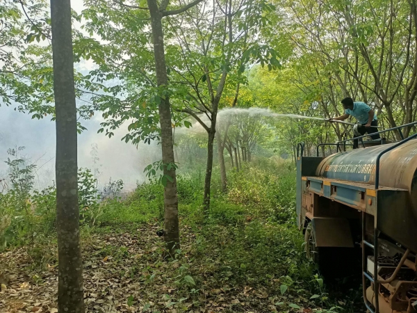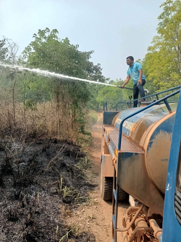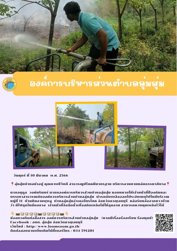 นายอนุกูล วงค์นรินทร์ นายกองค์การบริหารส่วนตำบลลุ่มสุ่ม มอบหมายให้เจ้าหน้าที่ป้องกันและบรรเทาสาธารณภัยองค์การบริหารส่วนตำบลลุ่มสุ่ม นำรถดับเพลิงออกไประงับเหตุไฟไหม้บริเวณ หมู่ที่ 11 บ้านหินงามพุพลู ตำบลลุ่มสุ่ม อำเภอไทรโยค จังหวัดกาญจนบุรี หลังรับแจ้งจากชาวบ้านว่า มีไฟลุกไหม้ดงยาง เจ้าหน้าที่จึงฉีดน้ำเพื่อสกัดเพลิงไม่ให้ลุกลาม สามารถควบคุมเพลิงไว้ได้