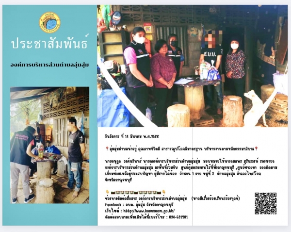 นายอนุกูล วงค์นรินทร์ นายกองค์การบริหารส่วนตำบลลุ่มสุ่ม มอบหมายให้นางกมลพร สุริยะวงษ์ รองนายกองค์การบริหารส่วนตำบลลุ่มสุ่ม ลงพื้นที่ร่วมกับ ศูนย์คุ้มครองคนไร้ที่พึ่งกาญจนบุรี ,ศูนย์ชาวเขา ออกติดตามเยี่ยมช่วยเหลือผู้ประสบปัญหา ผู้มีรายได้น้อย จำนวน 1