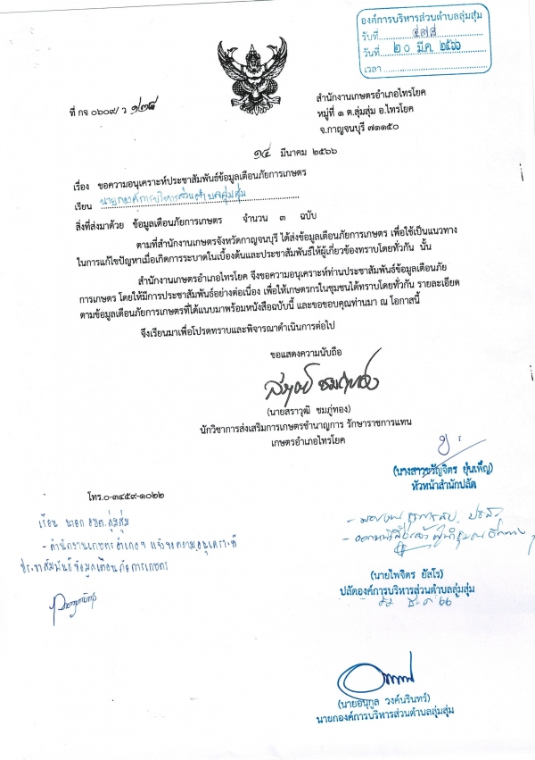 ประชาสัมพันธ์ เตือนภัยการเกษตร