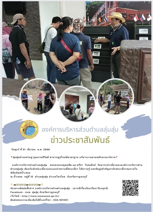 องค์การบริหารส่วนตำบลลุ่มสุ่ม ขอขอบพระคุณอดีต ผอ.ปรีชา วิเศษสิงห์ วิทยากรนำเที่ยวขององค์การบริหารส่วนตำบลลุ่มสุ่ม ต้อนรับนักท่องเที่ยวและแนะนำสถานที่ท่องเที่ยว ให้ความรู้ และข้อมูลสำคัญพานักท่องเที่ยวชมภายในพิพิธภัณฑ์ถ้ำเชลย