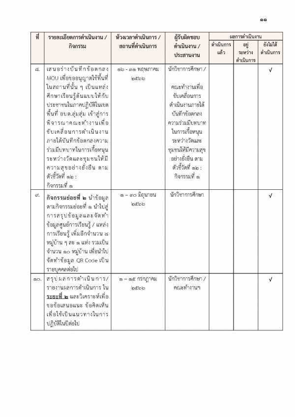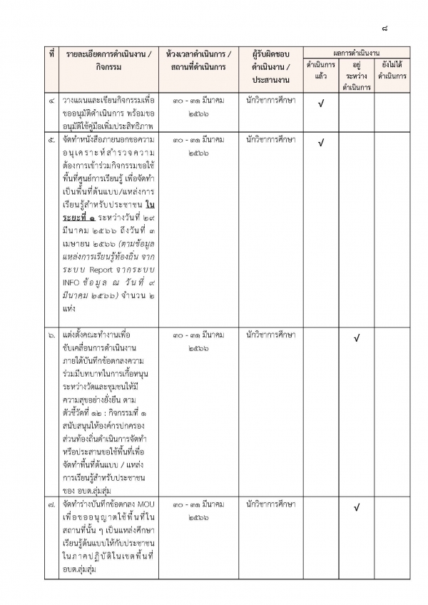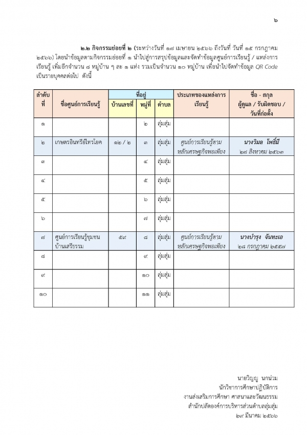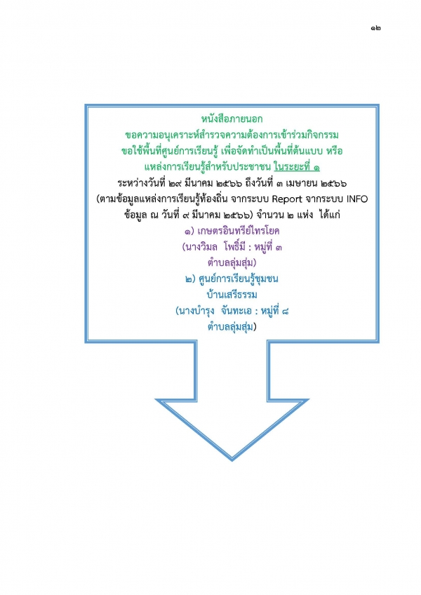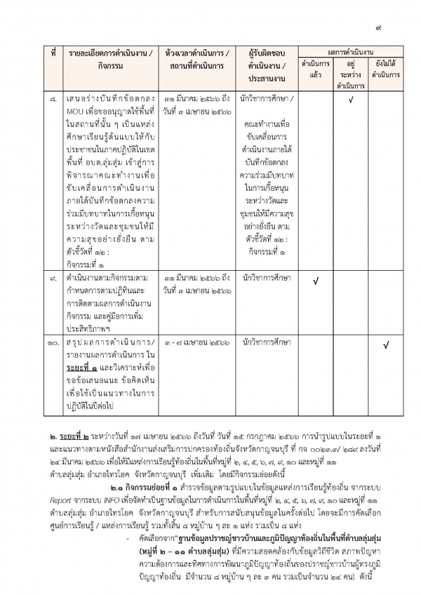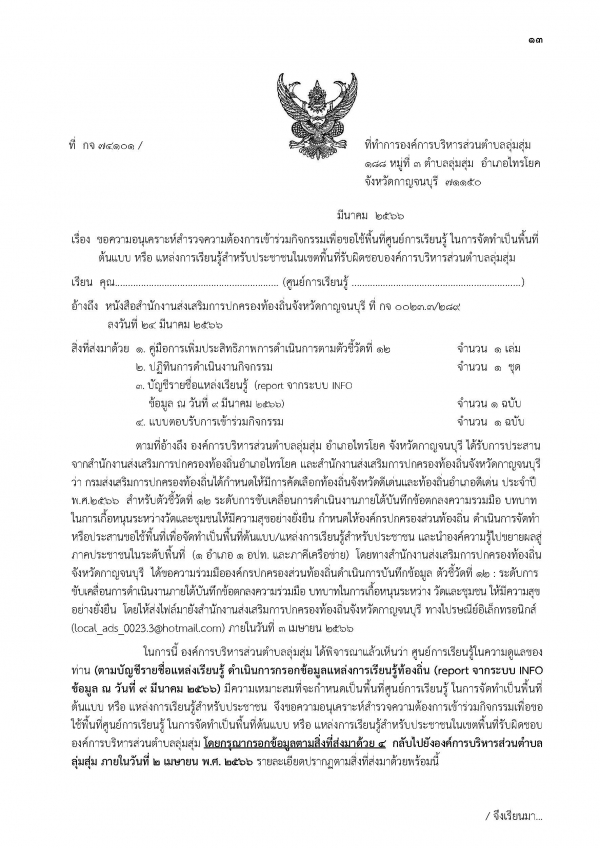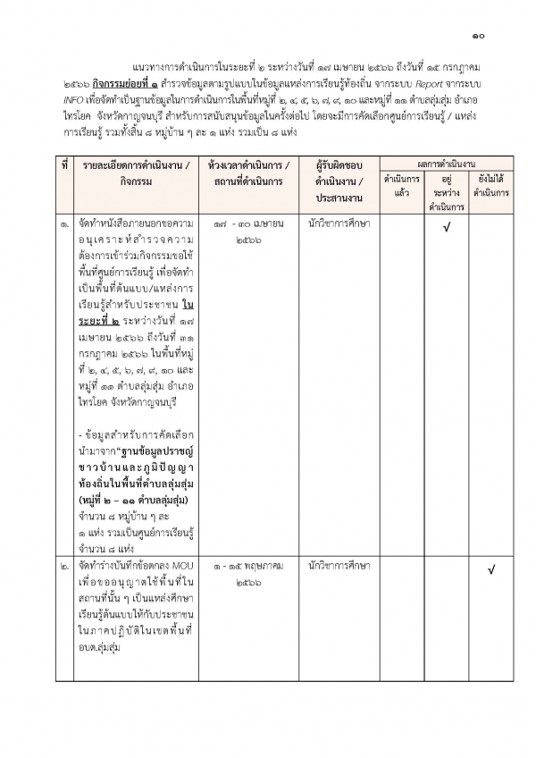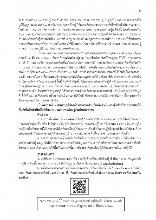 เพื่อจัดทำพื้นที่ต้นแบบ / แหล่งการเรียนรู้