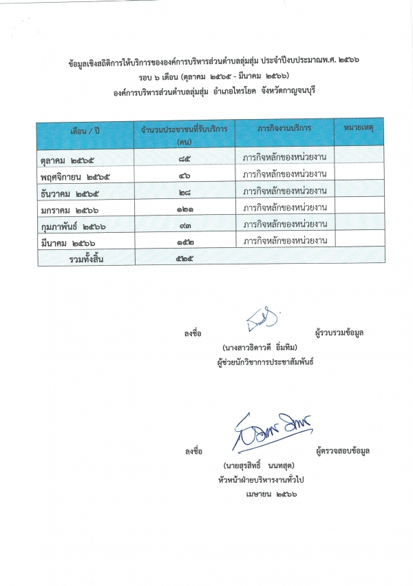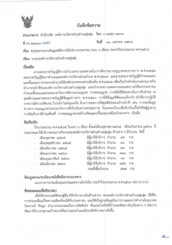สรุปผลรายงานข้อมูลสถิติการให้บริการประชาชน (รอบ 6 เดือน) ประจำปีงบประมาณ พ.ศ.2566