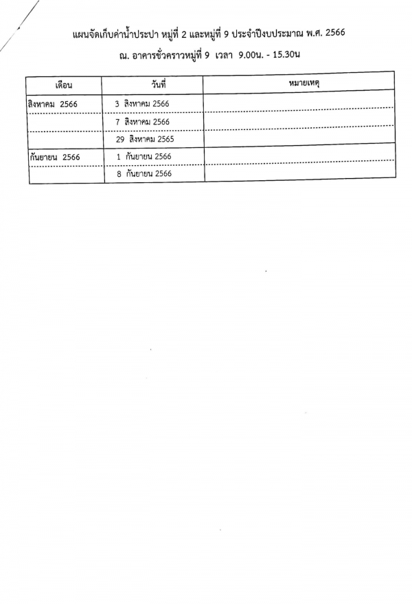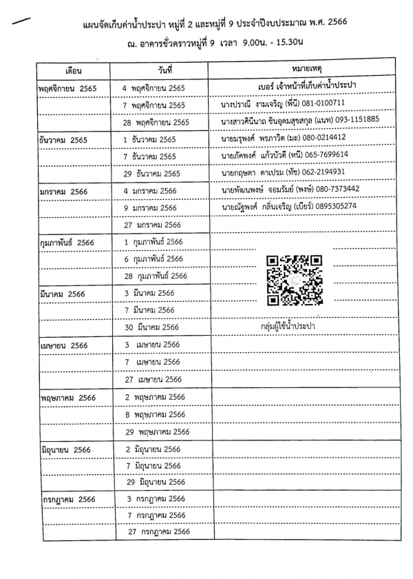 แจ้งประชาสัมพันธ์ วันนี้มีเจ้าพนักงานการเงินและบัญชี ลงพื้นที่รับบริการชำระค่าน้ำประปา หมู่ 2 และหมู่ 9 (นอกสถานที่ เวลา 09.00- 15.30 น.)