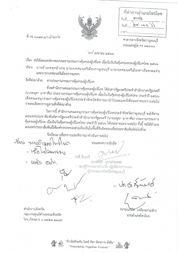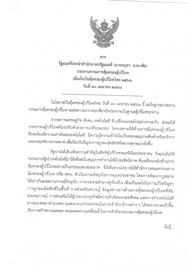เผยแพร่สารของประธานกรรมการคุ้มครองผู้บริโภค เนื่องในวันคุ้มครองผู้บริโภคไทย 2566