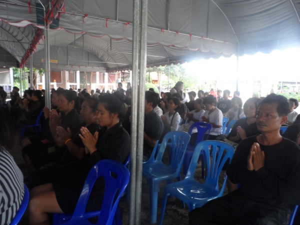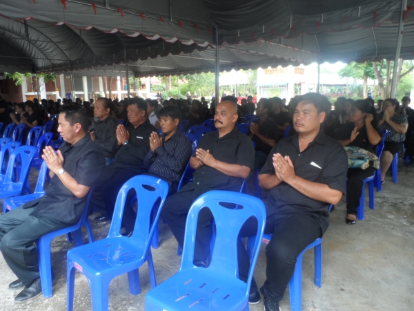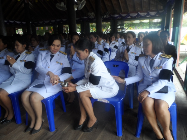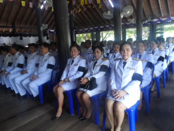 ดาบตำรวจช่วง นาคทองคำ นายกองค์การบริหารส่วนตำบลลุ่มสุ่ม คณะผู้บริหาร และเจ้าหน้าที่ องค์การบริหารส่วนตำบลลุ่มสุ่ม ร่วมพิธีบำเพ็ญกุศลสวดพระอธิธรรมถวายพระบรมศพพระบาทสมเด็จ พระปรมินทรมหาภูมิพลอดุลยเดช