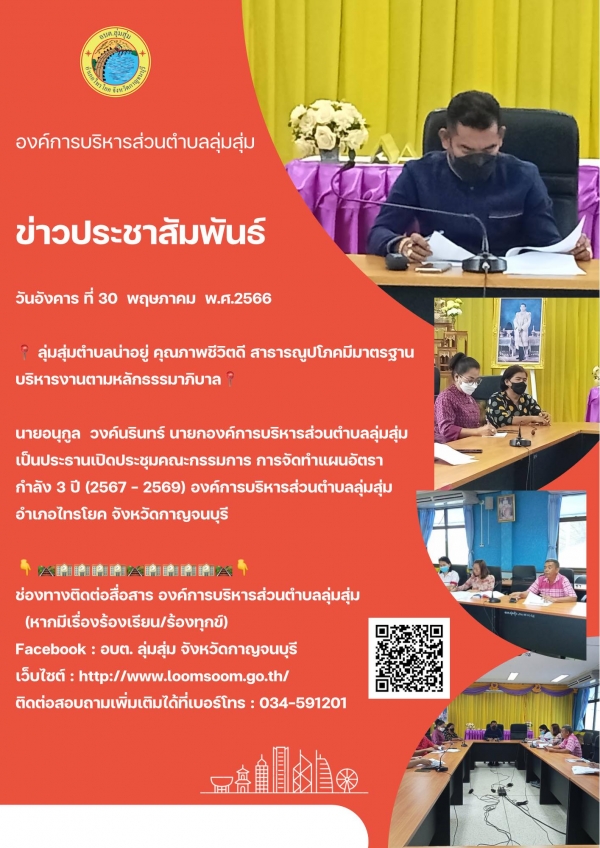 นายอนุกูล วงค์นรินทร์ นายกองค์การบริหารส่วนตำบลลุ่มสุ่ม เป็นประธานเปิดประชุมคณะกรรมการ การจัดทำแผนอัตรากำลัง 3 ปี (2567 - 2569) องค์การบริหารส่วนตำบลลุ่มสุ่ม อำเภอไทรโยค จังหวัดกาญจนบุรี