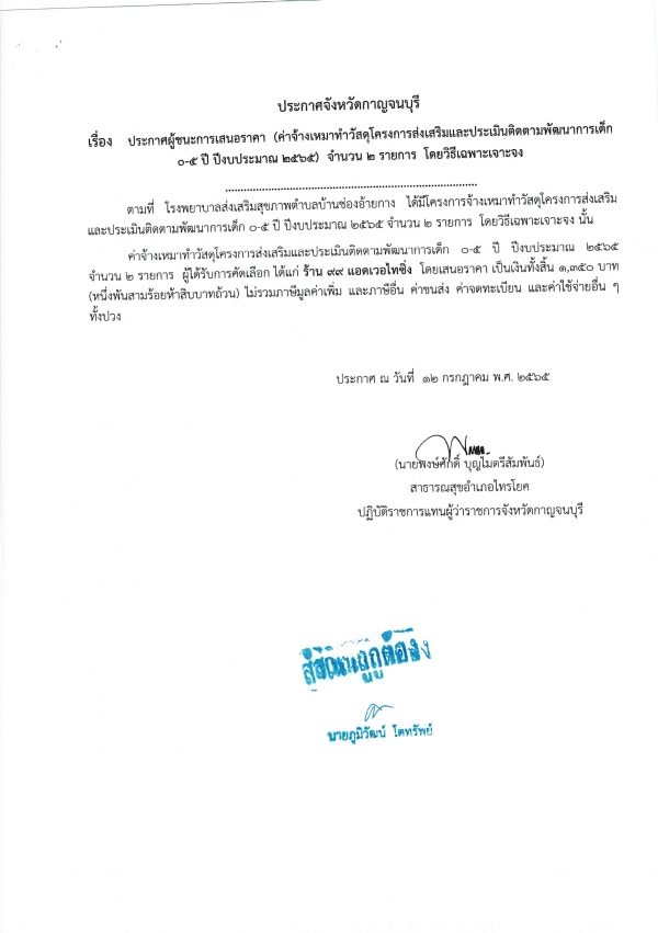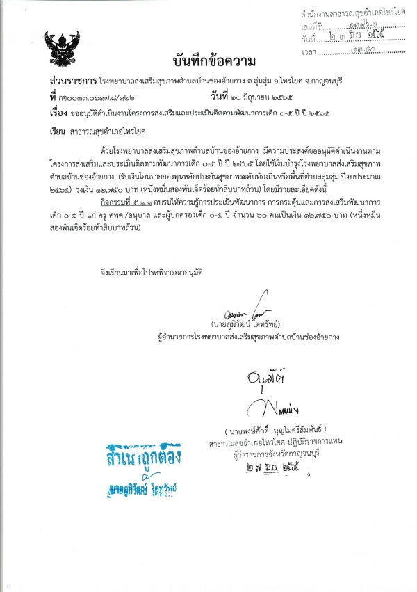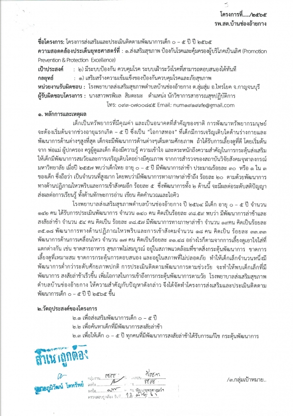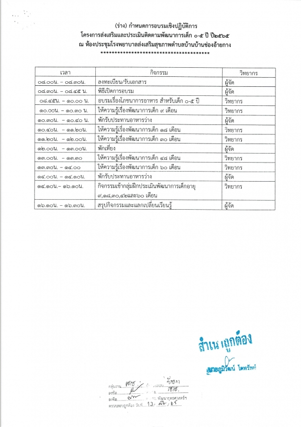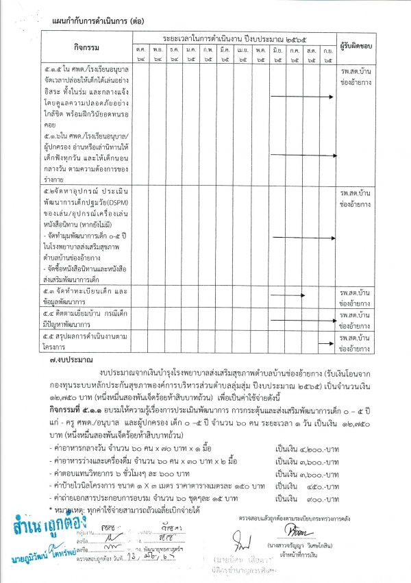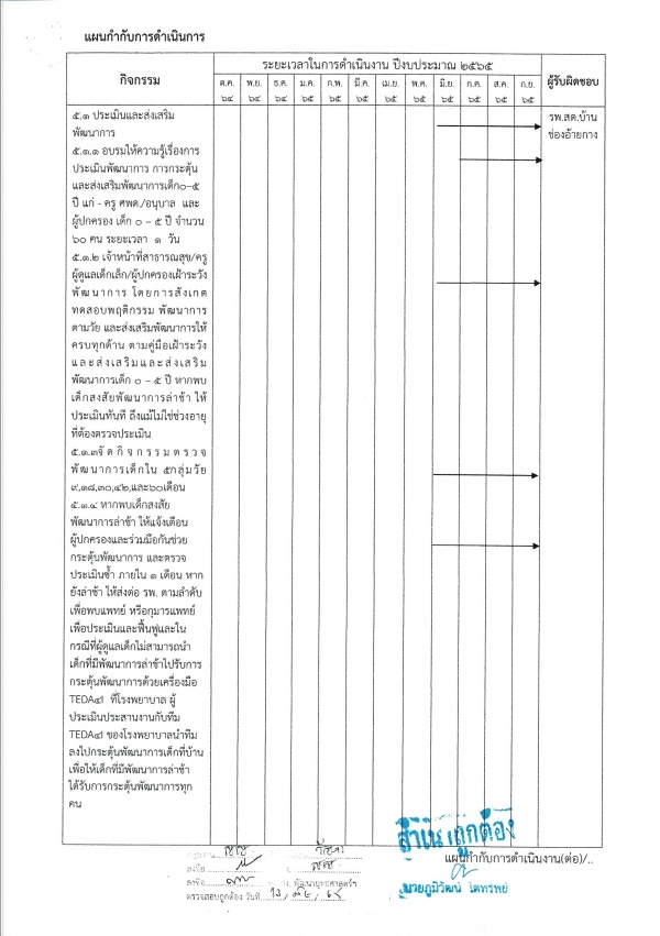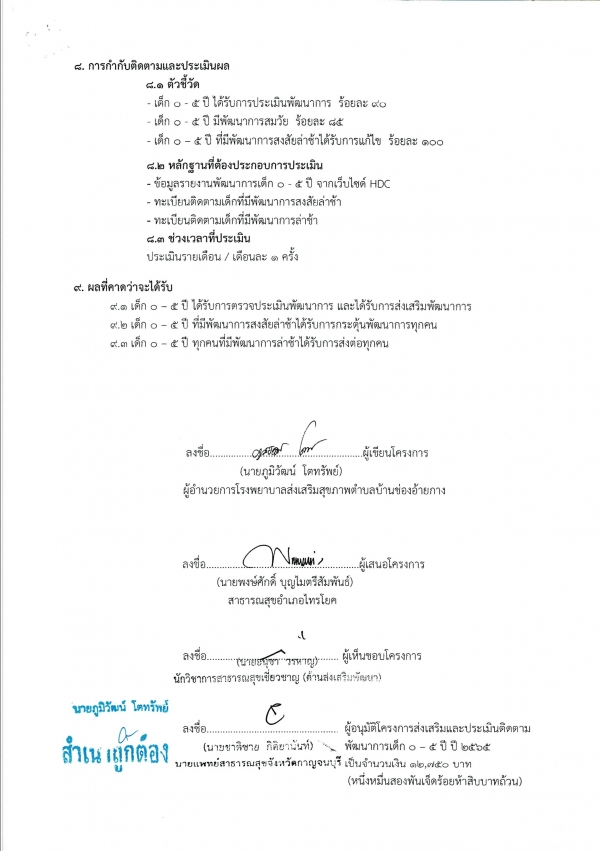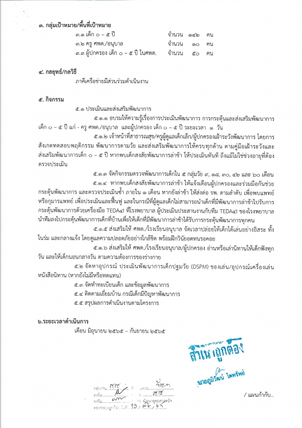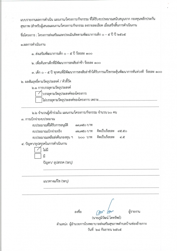รายงานผลการดำเนินการโครงการส่งเสริมและประเมินติดตามพัฒนาการเด็ก 0-5 ปี ปี 2565