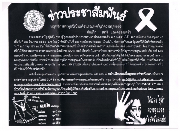 ขอความร่วมมือรณรงค์ยุติความรุนแรงต่อเด็ก สตรี และความรุนแรงในครอบครัว
