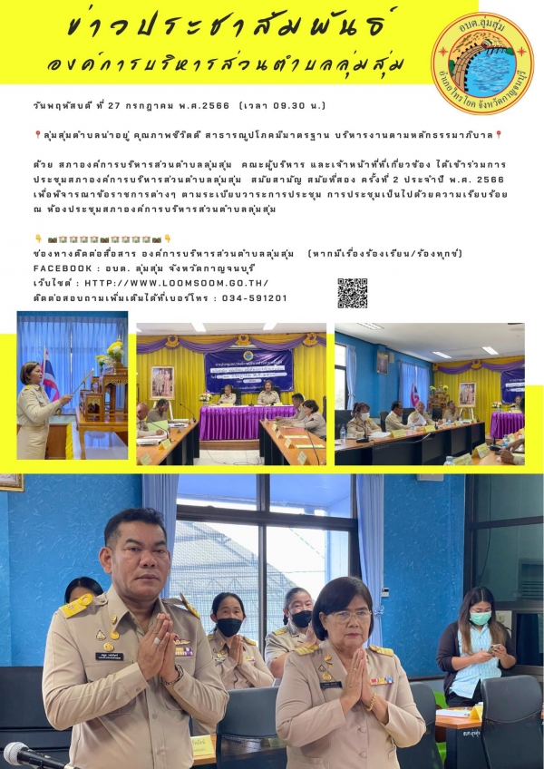 ด้วย สภาองค์การบริหารส่วนตำบลลุ่มสุ่ม คณะผู้บริหาร และเจ้าหน้าที่ที่เกี่ยวข้อง ได้เข้าร่วมการประชุมสภาองค์การบริหารส่วนตำบลลุ่มสุ่ม สมัยสามัญ สมัยที่สอง ครั้งที่ 2 ประจำปี พ.ศ. 2566 เพื่อพิจารณาข้อราชการต่างๆ ตามระเบียบวาระการประชุม การประชุมเป็นไปด้วยควา