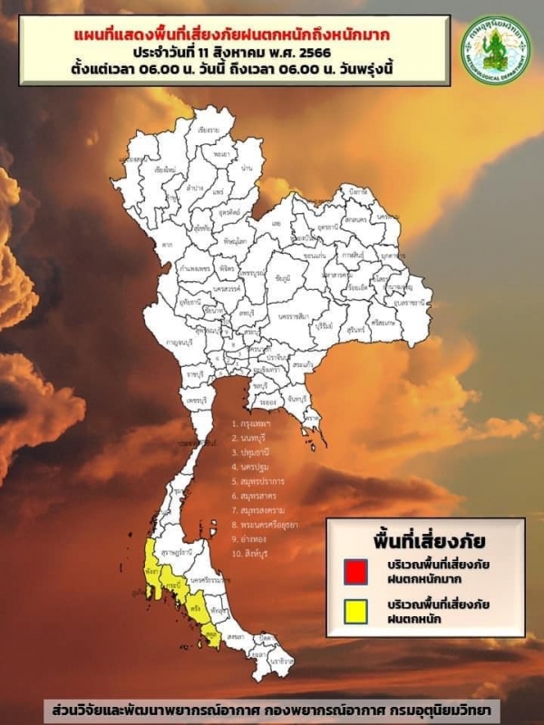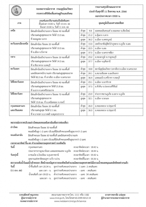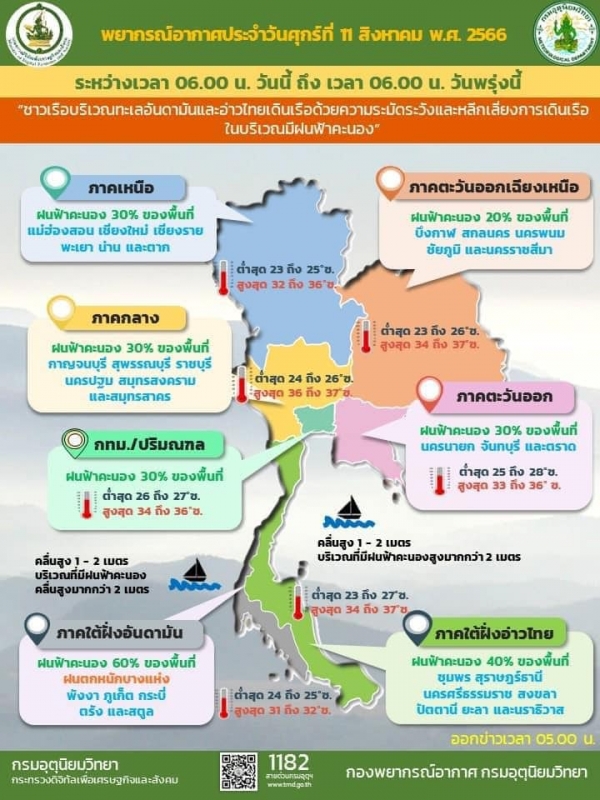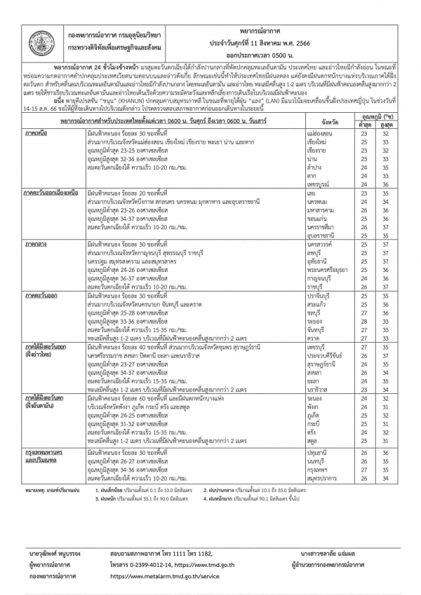 พยากรณ์อากาศประจำวันศุกร์ที่ 11 สิงหาคม 2566 ตั้งแต่เวลา 06.00 น. วันนี้ถึง 06.00 น. วันพรุ่งนี้