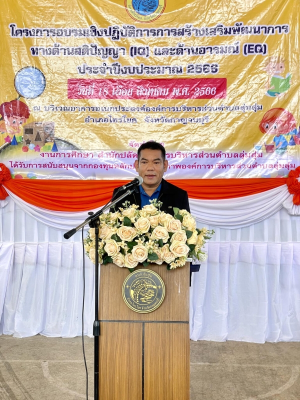 นายอนุกูล วงค์นรินทร์ นายกองค์การบริหารส่วนตำบลลุ่มสุ่ม เป็นประธานกล่าวเปิดโครงการอบรมเชิงปฏิบัติการการเสริมสร้างพัฒนาการด้านสติปัญญา (IQ) และด้านอารมณ์ (EQ) ประจำปี พ.ศ.2566 สังกัดองค์การบริหารส่วนตำบลลุ่มสุ่ม ของศูนย์พัฒนาเด็กเล็กในสังกัดองค์การบริหา