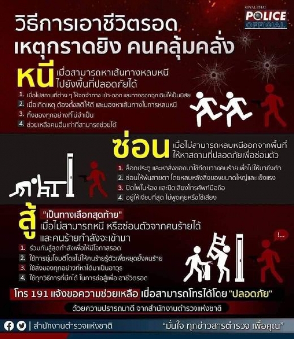 วิธีการเอาชีวิตรอด เหตุกราดยิง คนคลุ้มคลั่ง