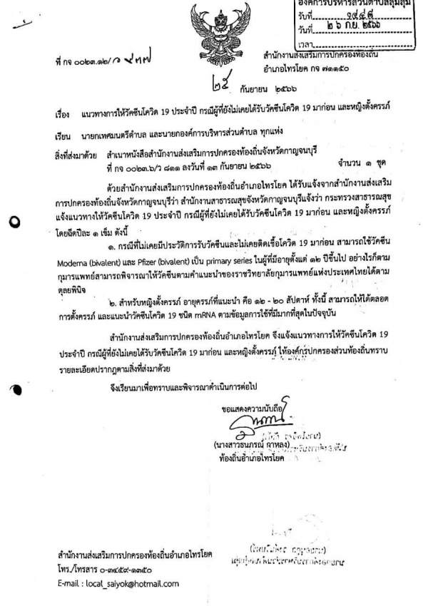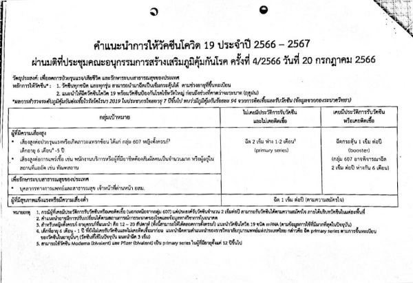 ประชาสัมพันธ์ กระทรวงสาธารณสุข แนวทางการฉีดวัคซีนโควิด 19 ประจำปี กรณีผู้ที่ยังไม่เคยได้รับวัคซีนโควิด 19 มาก่อน และหญิงตั้งครรภ์