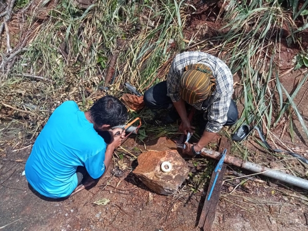 นายอนุกูล วงค์นรินทร์ นายกองค์การบริหารส่วนตำบลลุ่มสุ่ม มอบหมายให้ กองช่างเจ้าหน้าที่ ดำเนินการซ่อมท่อน้ำประปาแตก บริเวณซอยเก้าถ้ำ หมู่ที่ 2 บ้านเขาสามชั้น ตำบลลุ่มสุ่ม อำเภอไทรโยค จังหวัดกาญจนบุรี ดำเนินการซ่อมแซมเสร็จเรียบร้อย