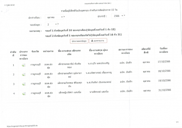 บัญชีรายชื่อผู้ขอรับสิทธิเงินอุดหนุน เพื่อการเลี้ยงดูเด็กแรกเกิด ปีงบประมาณ พ.ศ.2566