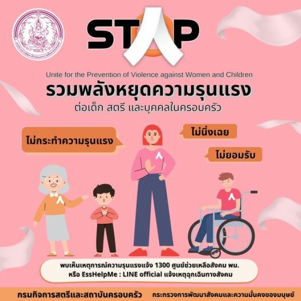 ประชาสัมพันธ์ จากกระทรวงการพัฒนา สังคมและความมั่นคงของมนุษย์ "รวมพลังหยุดความรุนแรง ต่อเด็ก สตรี และ บุคคลในครอบครัว"