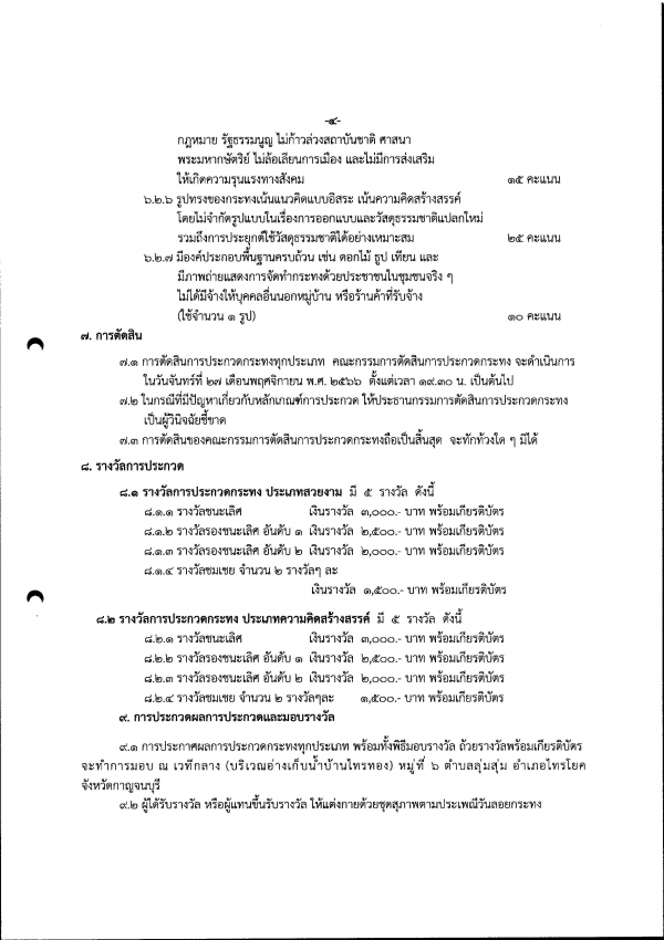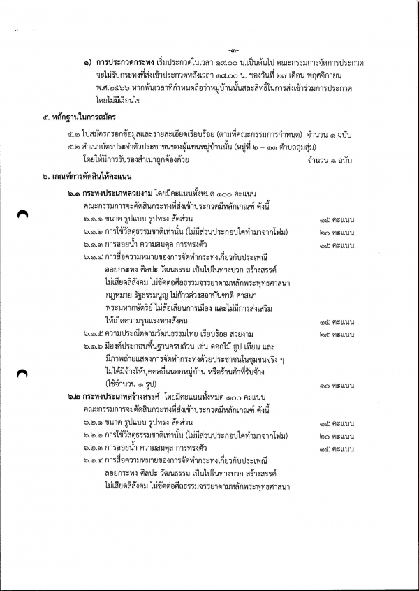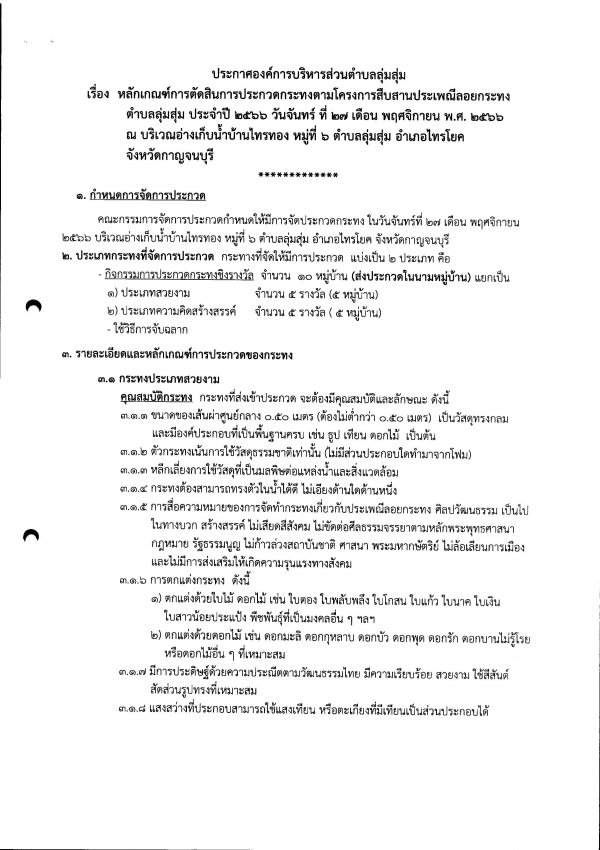 เรื่อง หลักการตัดสินประกวดกระทงตามโครงการสืบสานประลอยกระทง ตำบลลุ่มสุ่ม ประจำปี 2566