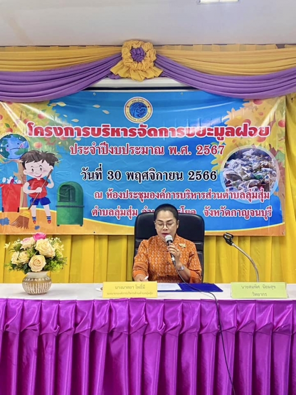 นายอนุกูล วงค์นรินทร์ นายกองค์การบริหารส่วนตำบลลุ่มสุ่ม มอบหมายให้นางนาตยา โพธิ์มี รองนายกองค์การบริหารส่วนตำบลลุ่มสุ่ม เป็นประธานกล่าวเปิดโครงการบริหารจัดการขยะมูลฝอย ประจำปีงบประมาณ พ.ศ. 2567 โดยมีนักเรียนในพื้นที่ตำบลลุ่มสุ่มเข้าร่วมโครงการฯ เพื่อกระตุ้นและสร้างจิตสำนึกให้กับเด็กๆ ในตำบลลุ่มสุ่ม มีส่วนร่วมในการกำจัดขยะ แยกขยะมูลฝอยในครัวเรือน เพื่อลดขยะต้นทาง