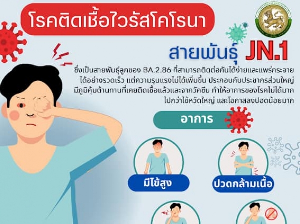 ด่วน!! เฝ้าระวัง การแพร่ระบาดของโรคติดเชื้อไวรัสโคโรนา 2019 (COVID - 19) สายพันธุ์ JN.1 ระบาดในไทย