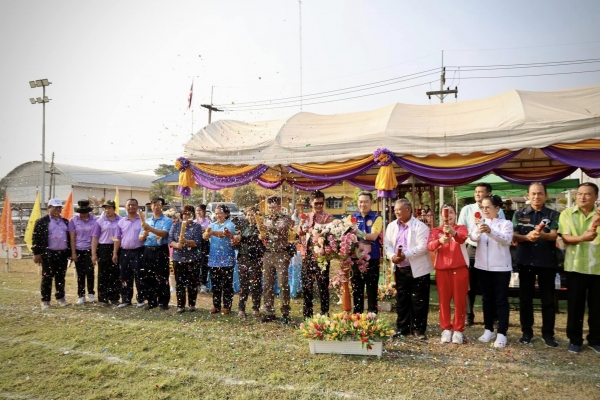 นายอนุกูล วงค์นรินทร์ นายกองค์การบริหารส่วนตำบลลุ่มสุ่ม มอบหมายให้นางกมลพร สุริยะวงษ์ รองนายกองค์การบริหารส่วนตำบลลุ่มสุ่ม พร้อมด้วยนางนาตยา โพธิ์มี รองนายกองค์การบริหารส่วนตำบลลุ่มสุ่ม ร่วมพิธีเปิดและสนับสนุนโครงการพัฒนาผู้เรียน : กีฬาต้านยาเสพติด โดยมีว