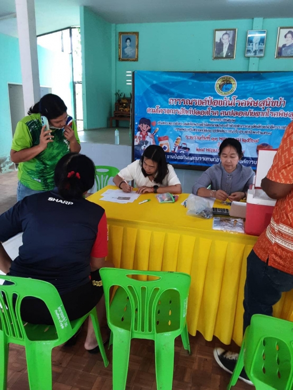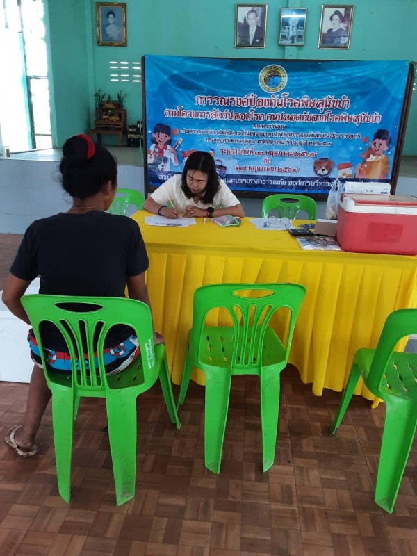 ตารางกำหนดการฉีดวัคซีนป้องกันโรคพิษสุนัขบ้า โครงการสัตว์ปลอดโรค คนปลอดภัย จากโรคพิษสุนัขบ้า ตามพระปณิธาน ศาสตราจารย์ ดร.สมเด็จพระเจ้าน้องนางเธอ เจ้าฟ้าจุฬาภรณวลัยลักษณ์ อัครราชกุมารี กรมพระศรีสวางควัฒนวรขัตติยราชนารี วันที่ ๒๓ พฤษภาคม ๒๕๖๗ ศาลาประชาคม หม