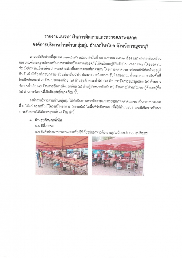 รายงานแนวทางการติดตามและตรวจสภาพตลาด องค์การบริหารส่วนตำบลลุ่มสุ่ม อำเภอไทรโยค จังหวัดกาญจนบุรี