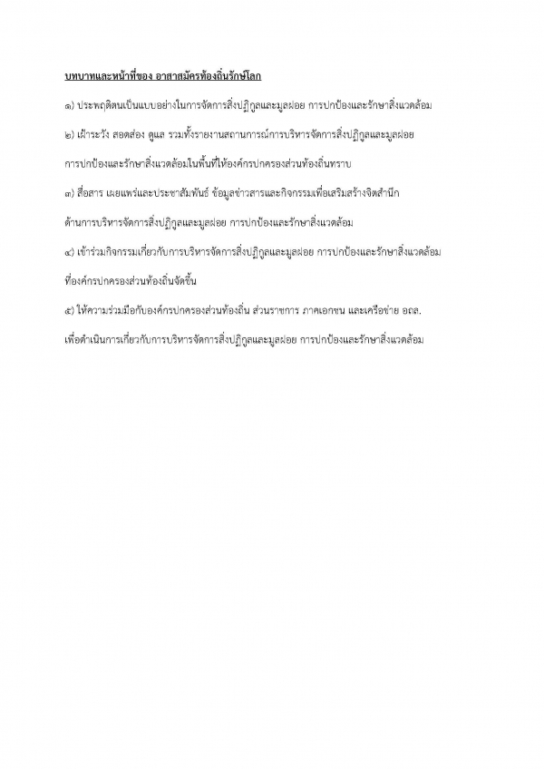 อถล. เป็นการรวมกลุ่มของประชาชนในท้องถิ่นที่มีจิตอาสาในการช่วยเหลืองานขององค์กรปกครองส่วนท้องถิ่น เกี่ยวกับการจัดการสิ่งปฏิกูลและมูลฝอย การปกป้องและรักษาทรัพยากรธรรมชาติและสิ่งแวดล้อม