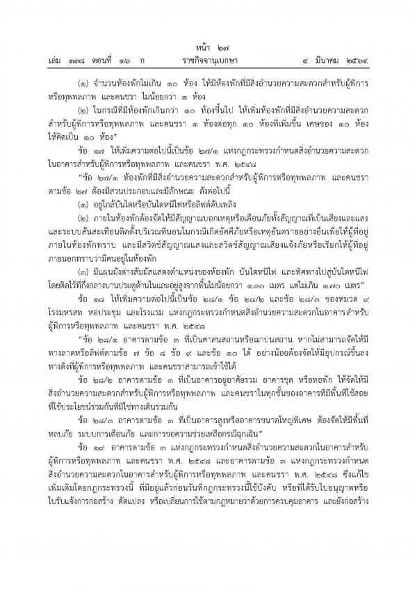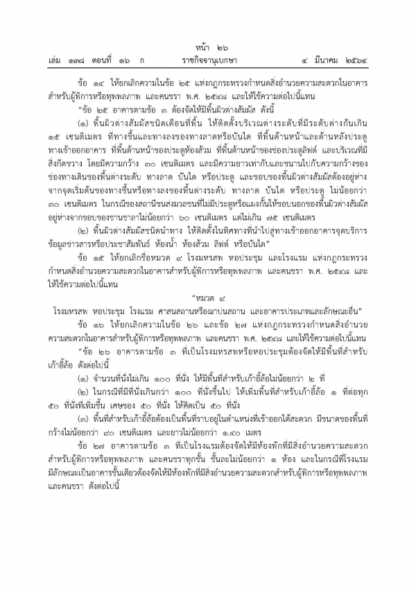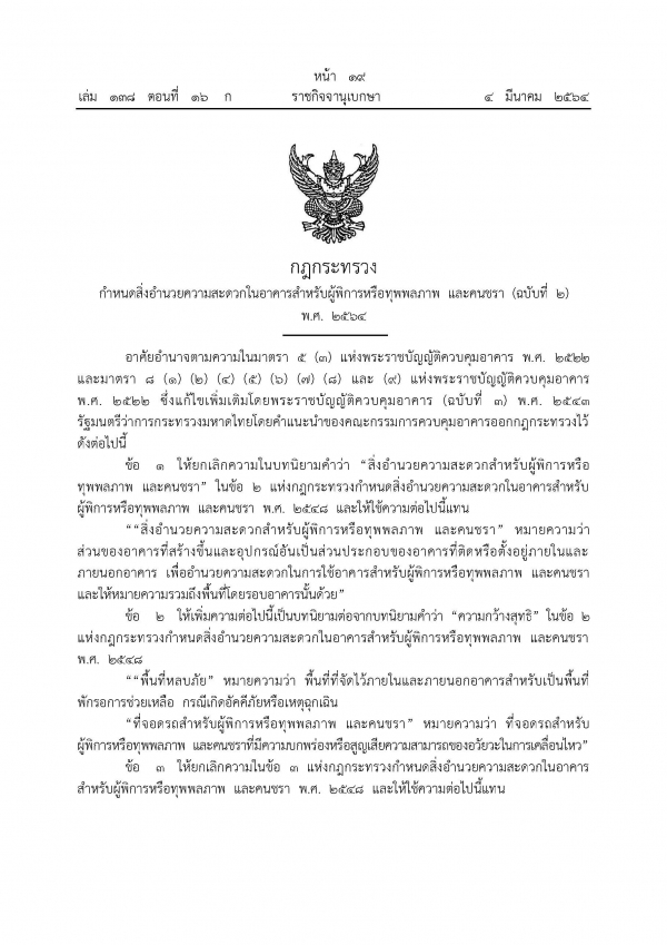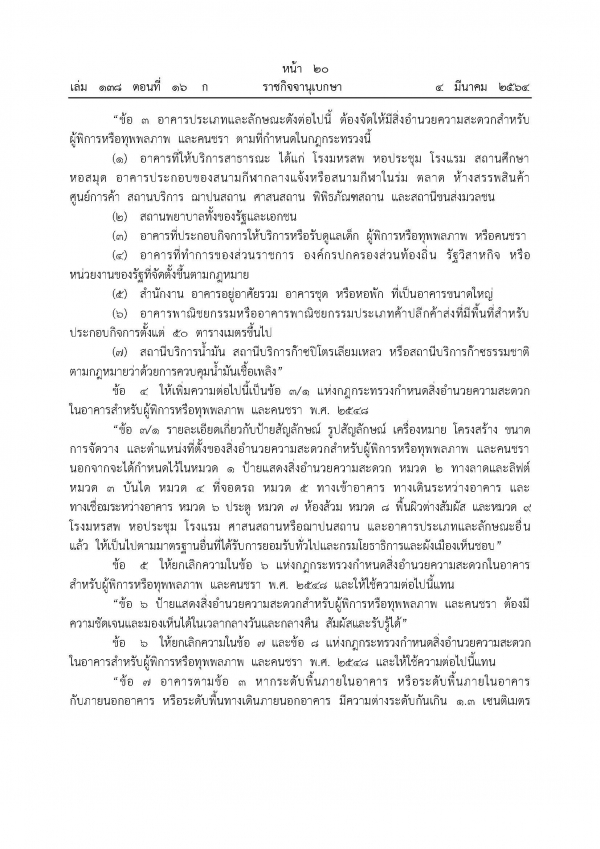 ประชาสัมพันธ์ กฎกระทรวง การจัดทำสิ่งอำนวยความสะดวกขั้นพื้นฐานสำหรับผู้พิการหรือทุพพลภาพและคนชรา