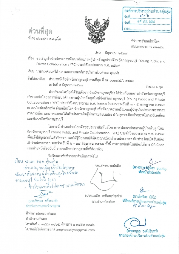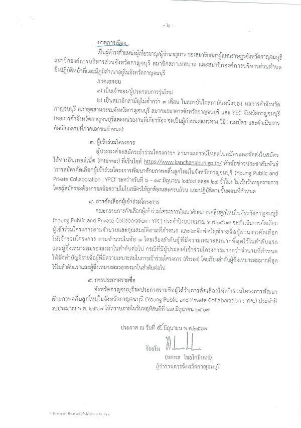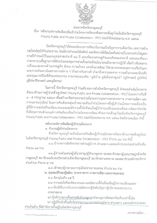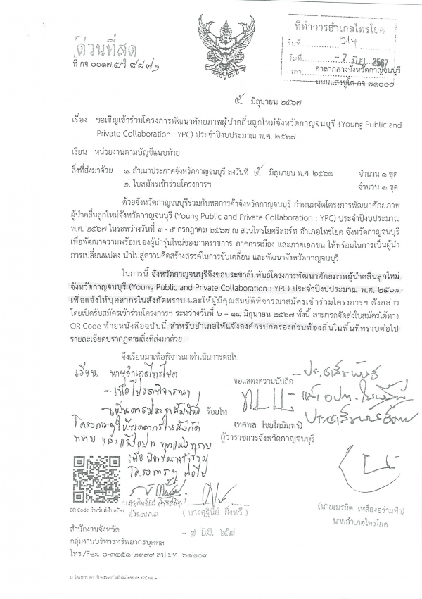ขอเชิญเข้าร่วมโครงการพัฒนาศักยภาพผู้นำคลื่นลูกใหม่จังหวัดกาญจนบุรี ประจำปีงบประมาณ พ.ศ.2567