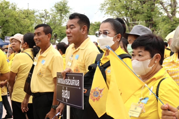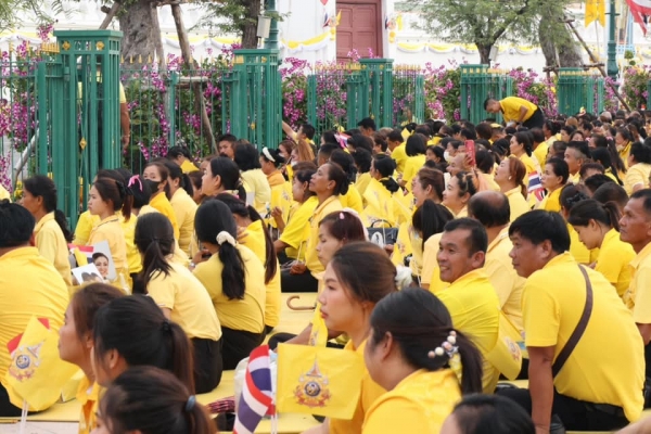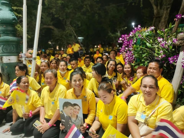 ประชาชนจากทั่วสารทิศ ทุกคนต่างพร้อมใจกันแต่งกายสุภาพโทนสีเหลือง นำธงชาติไทย และธงตราสัญลักษณ์งานเฉลิมพระเกียรติฯ เพื่อเตรียมโบก เพื่อแสดงความจงรักภักดีและน้อมสำนึกในพระมหากรุณาธิคุณต่อสถาบันพระมหากษัตริย์ และชื่นชมพระบารมีพระบาทสมเด็จพระเจ้าอยู่หัว และสมเด็จพระนางเจ้าฯ พระบรมราชินี