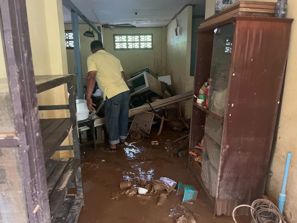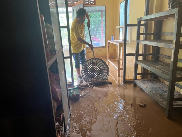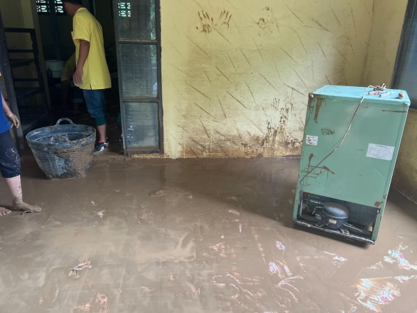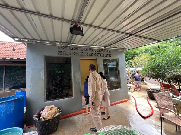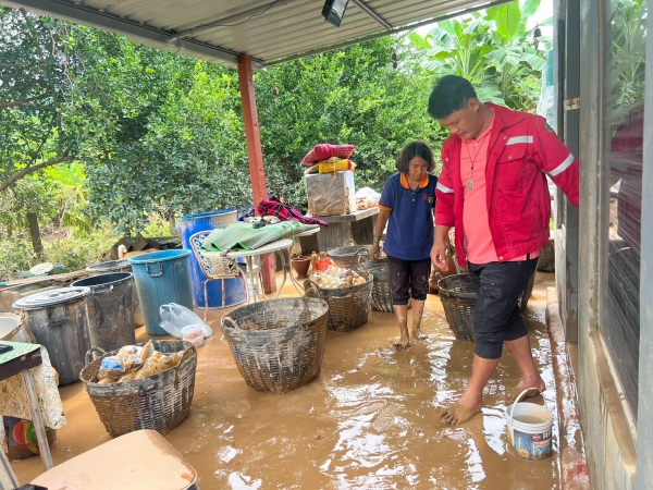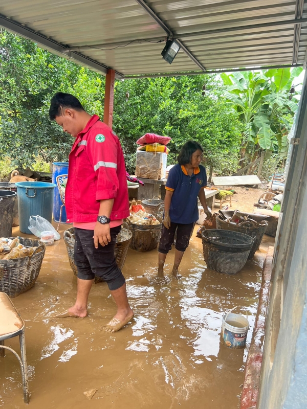 เจ้าหน้าที่ร่วมกันทำความสะอาด ฉีดล้างดินโคลนออกจากถนน และบ้านเรือนของประชาชนที่ได้รับผลกระทบจากเหตุการณ์น้ำท่วม และดินโคลนเข้าท่วมในหมู่บ้าน บ้านเรือนได้รับความเสียหาย