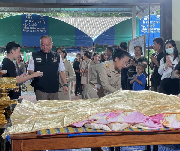 นายอนุกูล วงค์นรินทร์ นายกองค์การบริหารส่วนตำบลลุ่มสุ่ม เป็นประธานพิธีรดน้ำศพ คุณแม่ ทิพวรรณ เยือกเย็น พร้อมคณะผู้บริหารและพนักงานเจ้าหน้าที่องค์การบริหารส่วนตำบลลุ่มสุ่ม ทั้งนี้บรรยากาศภายในงานเป็นไปด้วยความโศกเศร้า