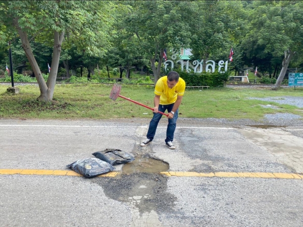 นายอนุกูล วงค์นรินทร์ นายกองค์การบริหารส่วนตำบลลุ่มสุ่ม มอบหมายให้เจ้าหน้าที่กองช่าง ได้ดำเนินการลงพื้นที่ทำการซ่อมแซมปะถนนที่ชำรุดเสียหายในพื้นที่ตำบลลุ่มสุ่ม บริเวณหมู่ที่ 10 ตำบลลุ่มสุ่ม อำเภอไทรโยค จังหวัดกาญจนบุรี เพื่อความปลอดภัยในชีวิตและทรัพย์สิน