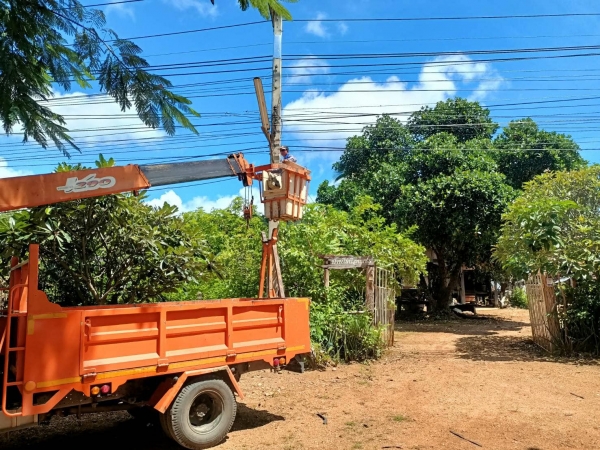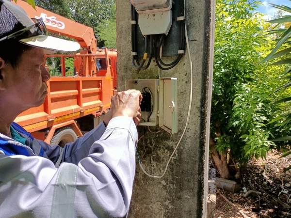 นายอนุกูล วงค์นรินทร์ นายกองค์การบริหารส่วนตำบลลุ่มสุ่ม มอบหมายให้เจ้าหน้าที่กองช่าง ดำเนินการซ่อมแซมไฟฟ้าสาธารณะและตรวจเช็ค - เปลี่ยนหลอดไฟ หมู่ที่ 2 บ้านเขาสามชั้น ตำบลลุ่มสุ่ม อำเภอไทรโยค จังหวัดกาญจนบุรี