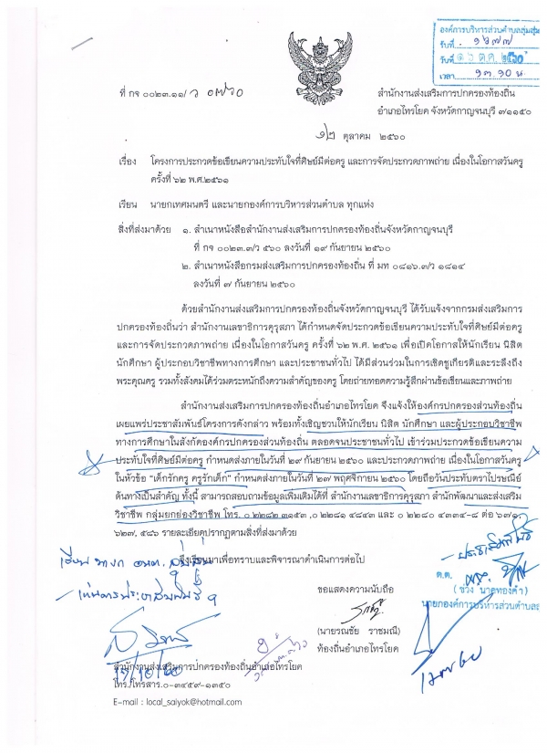 โครงการประกวดข้อเขียนความประทับใจที่ศิษย์มีต่อครู และการจัดประกวดภาพถ่าย เนื่องในโอกาสวันครูครั้งที่ ๖๒ พ.ศ.๒๕๖๑