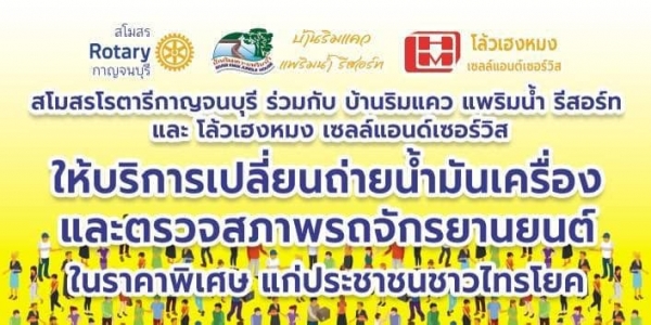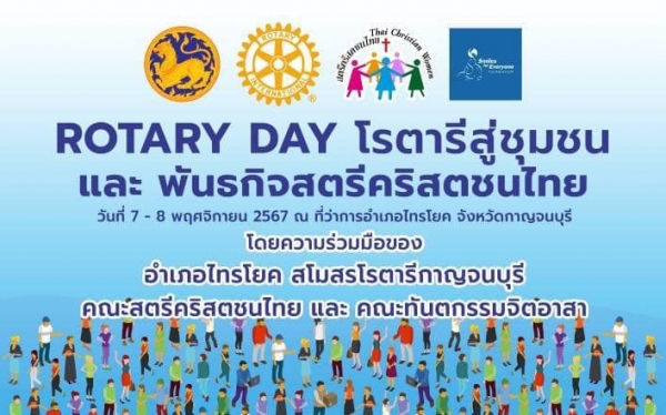ประชาสัมพันธ์ สโมสรโรตารี่มาบริการฟรีประชาชนอำเภอไทรโยค วันที่ 7-8 พฤศจิกายน 2567 ตัดแว่นฟรี ตัดผมฟรี ทำฟันฟรี
