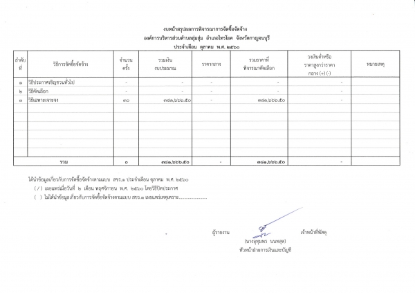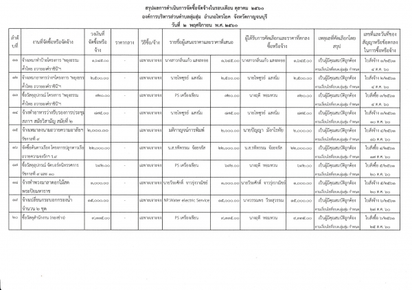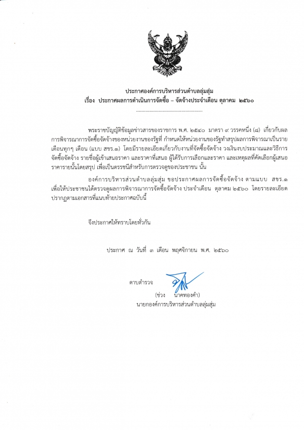 ประกาศองค์การบริหารส่วนตำบลลุ่มสุ่ม ประกาศผลการดำเนินการจัดซื้อ - จัดจ้างประจำเดือนตุลาคม ๒๕๖๐