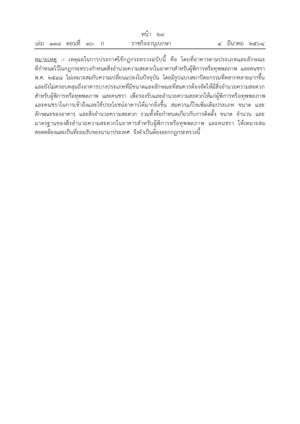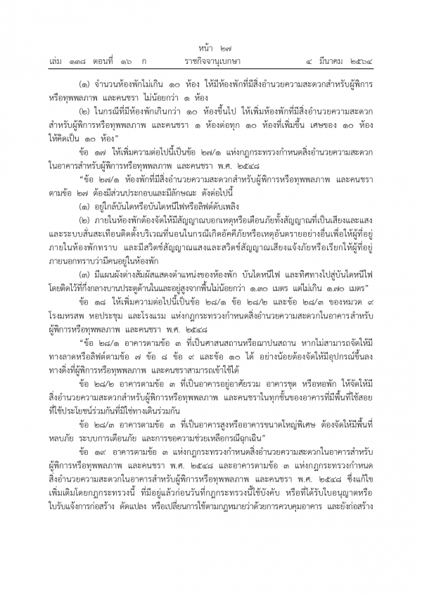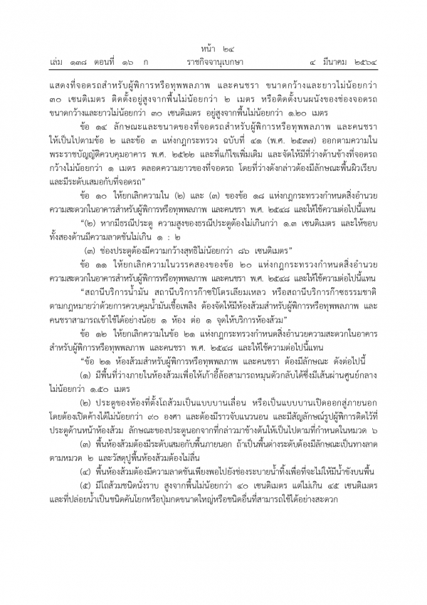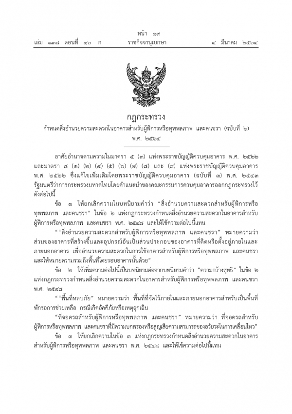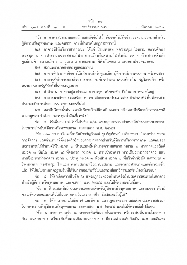 ประชาสัมพันธ์ กฎกระทรวง การจัดทำสิ่งอำนวยความสะดวกขั้นพื้นฐานสำหรับผู้พิการหรือทุพพลภาพและคนชรา