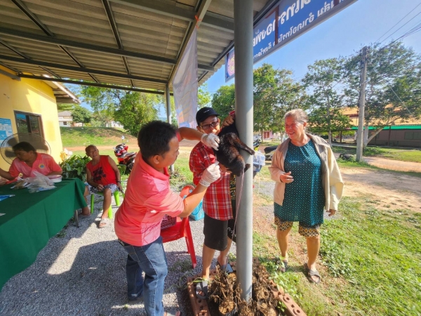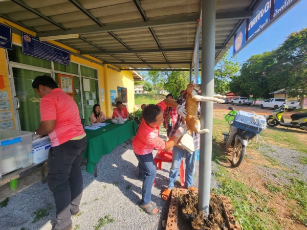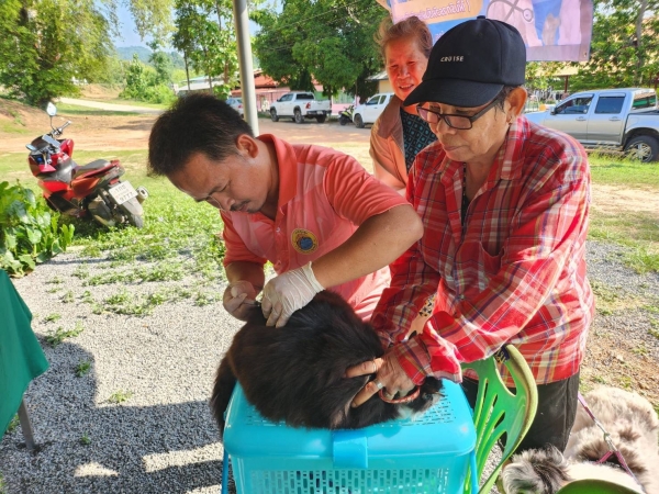 องค์การบริหารส่วนตำบลลุ่มสุ่ม ลงพื้นที่ฉีดวัคซีนป้องกันโรคพิษสุนัขบ้า ในสุนัขและแมว ตามโครงการสัตว์ปลอดโรค คนปลอดภัย จากโรคพิษสุนัขบ้า ตามพระปณิธานศาสตราจารย์ ดร.สมเด็จพระเจ้าน้องนางเธอ เจ้าฟ้าจุฬาภรณวลัยลักษณ์ อัครราชกุมารี กรมพระศรีสวางควัฒน วรขัตติยราชนารี ประจำปีงบประมาณ 2568 ณ หมู่ 6 ตำบลลุ่มสุ่ม อำเภอไทรโยค จังหวัดกาญจนบุรี