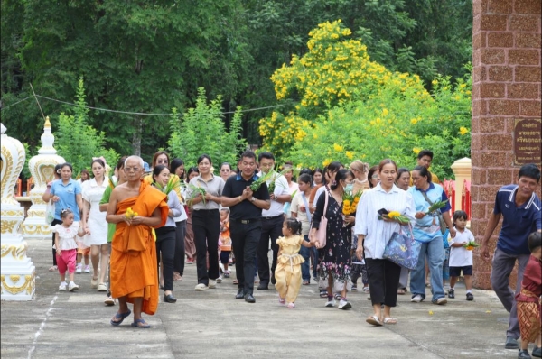 นายอนุกูล วงค์นรินทร์ นายกองค์การบริหารส่วนตำบลลุ่มสุ่ม พร้อมด้วยคณะผู้บริหาร เจ้าหน้าที่ ครู เด็กนักเรียน และผู้ปกครอง ร่วมโครงการงานประเพณีแห่เทียนจำนำนำพรรษาและเวียนเทียนวันอาสาฬหบูชา ประจำปี 2568 เพื่อสืบสานประเพณีอันดีงามทางพระพุทธศาสนา และส่งเสริ