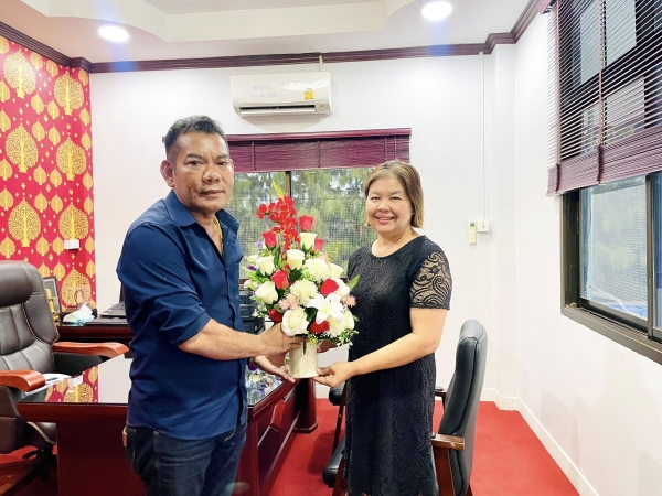 นางสาว ศิริเพ็ญ ก้อนเมฆ ผู้อำนวยการโรงเรียนสามัคคีธรรมนุสรณ์ และพ.อ.ท.ชาญฑิต ตาทิน จัดการสาขาธนาคารเพื่อการเกษตรและสหกรณ์การเกษตร สาขาน้ำตกไทรโยคน้อย ร่วมแสดงความยินดีกับ นายอนุกูล วงค์นรินทร์ นายกองค์การบริหารส่วนตำบลลุ่มสุ่ม เนื่องในโอกาสเข้ารับต